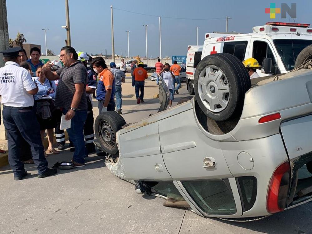 Coatzacoalcos, Ver.- Un fuerte accidente se registró entre dos vehículos particulares en el malecón Costero esquina con Abraham Zabludovsky de Coatzacoalcos, una de las unidades terminó volcada dejando a cuatro personas lesionadas.