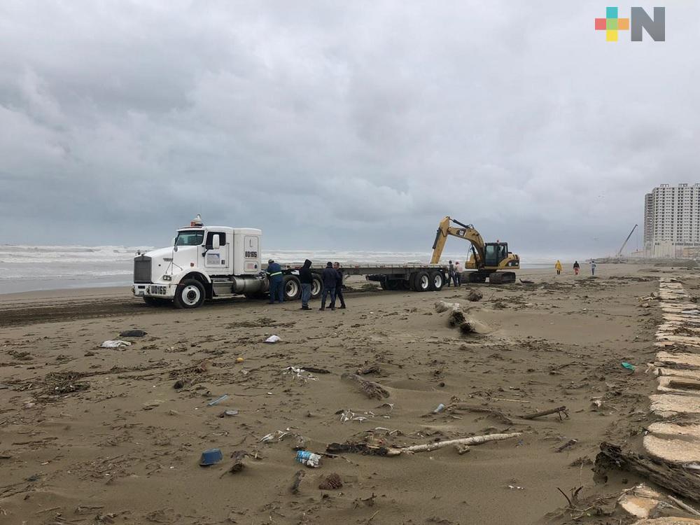 Los trabajos iniciaron esta semana por parte de la Secretaría de Obras Públicas y la empresa Grupo Elher y tiene como objetivo retener la arena y no cubra el malecón costero de la ciudad.