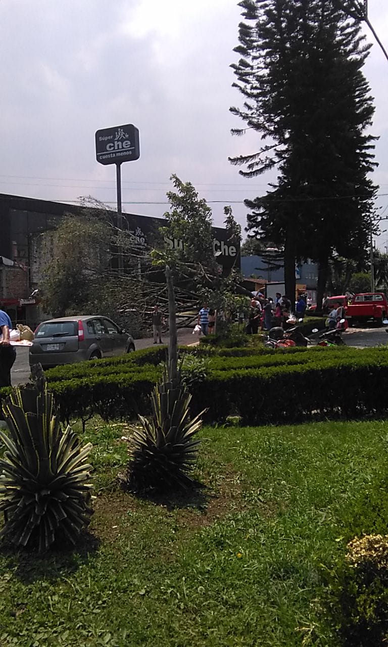 Xalapa, Ver.- Por las rachas de viento, esta tarde cayó un árbol sobre un vehículo en la avenida Ruiz Cortinez a la altura del Super Che de esta capital. De acuerdo a Protección Civil municipal, no hay lesionados.