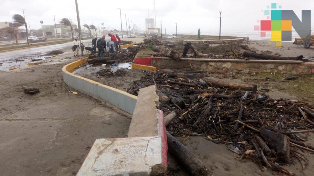 El malecón costero de la ciudad ha sido la zona mas dañada por el evento de ‘norte’ y el oleaje: algunos tramos del muro principal se cayeron en pedazos y el monumento a la Mujer también colapso.