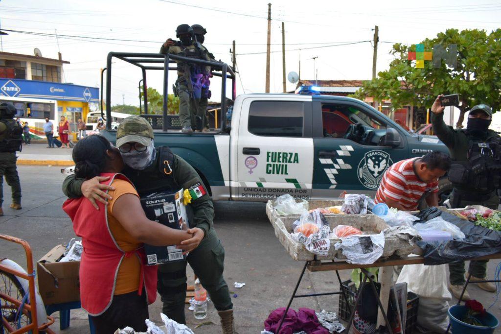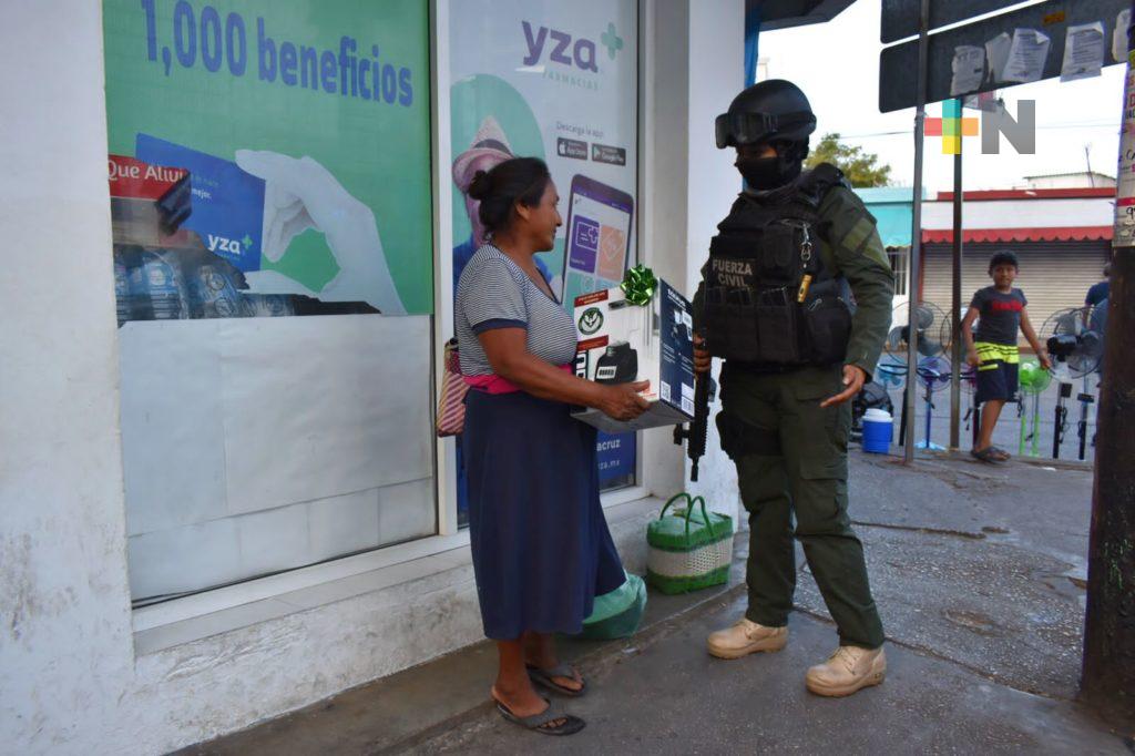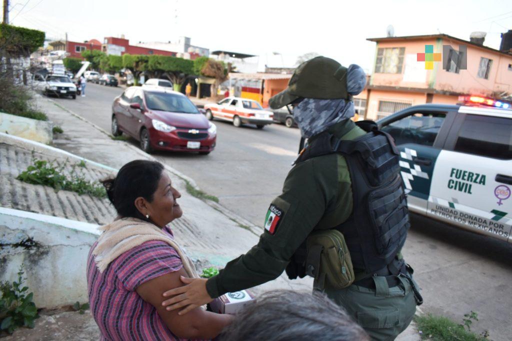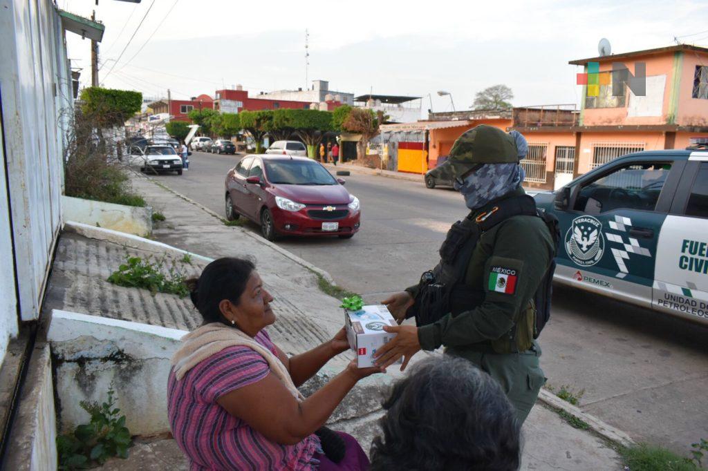 Acayucan, Ver.- Con motivo del Día de las Madres, elementos de la Fuerza Civil con base en Acayucan repartieron regalos a alguna mamás en calles de colonias de Acayucan, como Villalta, Cruz Verde, La Palma y en la zona centro de esta ciudad.