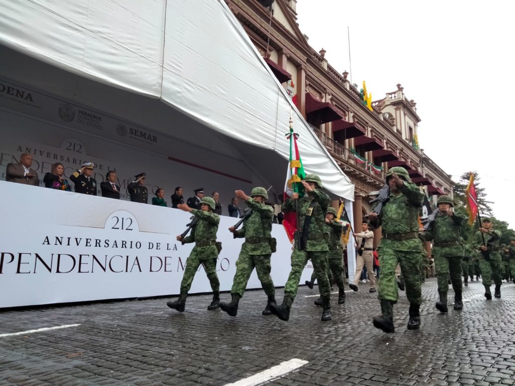 Xalapa, Ver.- Integrantes de las fuerzas armadas, de la Secretaría de Seguridad Pública, de la policía municipal de Xalapa, del Instituto de la Policía Auxiliar y del Heroico Cuerpo de Bomberos de Xalapa participaron en el desfile cívico-militar que con motivo del 212 aniversario del inicio de la gesta de Independencia de México se llevó a cabo la mañana de este viernes en la capital del estado.