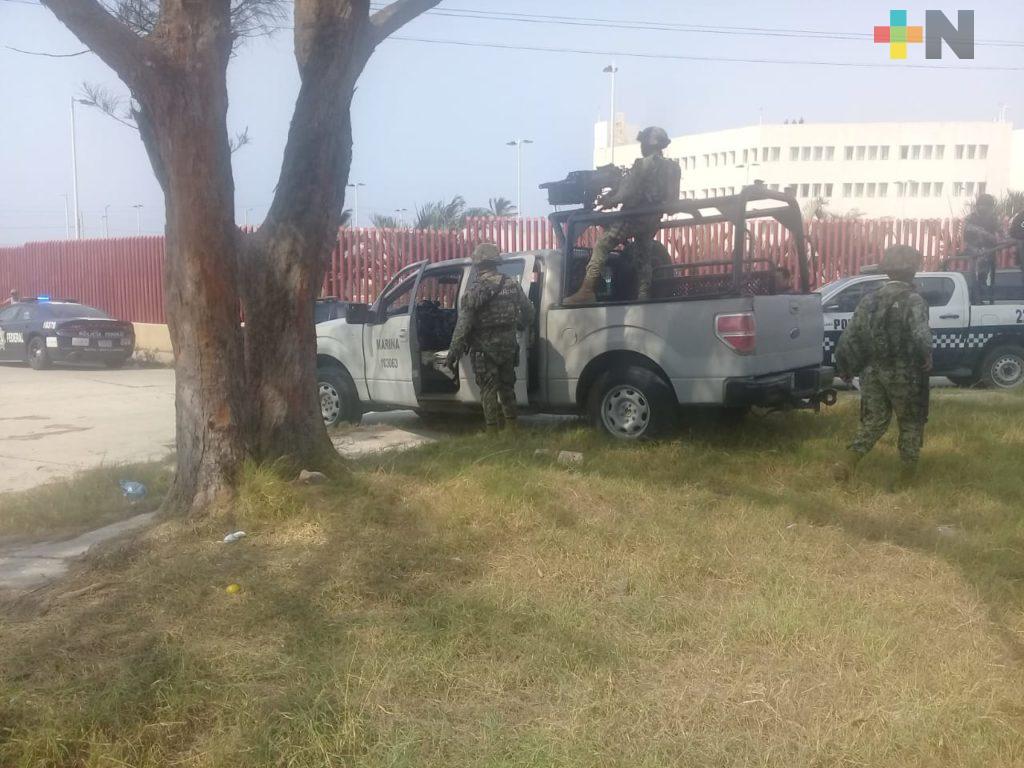 Coatzacoalcos, Ver.- Una veintena de unidades de la Secretaría de Seguridad Pública (SSP) del Estado, Ejercito Mexicano, Guardia Nacional y Marina se apostaron en la entrada principal del Centro de Readaptación Social (Cereso) Duport Ostión de Coatzacoalcos, tras registrarse una riña entre dos reos.
