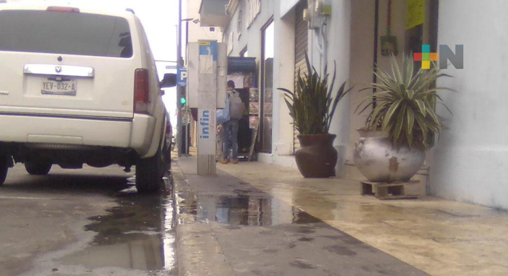 Fuga de aguas negras afecta a calles del Centro Histórico de Veracruz