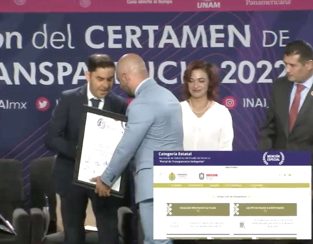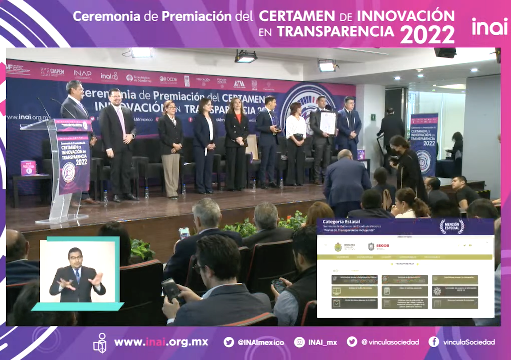 Xalapa, Ver.- La Secretaría de Gobierno del Estado de Veracruz, que encabeza Eric Cisneros Burgos fue galardonada en el Certamen de Innovación en Transparencia 2022, convocado por el Instituto Nacional de Acceso a la Información (INAI); Segob obtuvo mención especial en la categoría Estatal con su proyecto denominado “Portal de Transparencia Incluyente”.