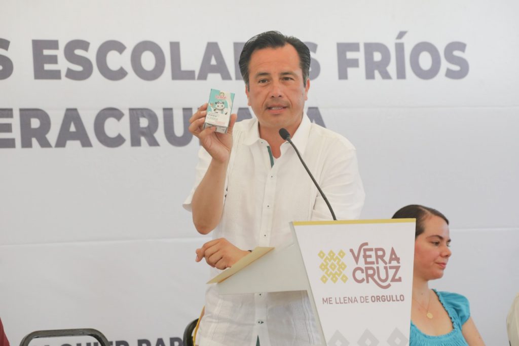 Veracruz, Ver.- El gobernador Cuitláhuac García Jiménez puso en marcha la entrega de desayunos escolares fríos en la ciudad de Veracruz, con lo que se beneficiará a cinco mil 759 niñas y niños de más de 60 escuelas.