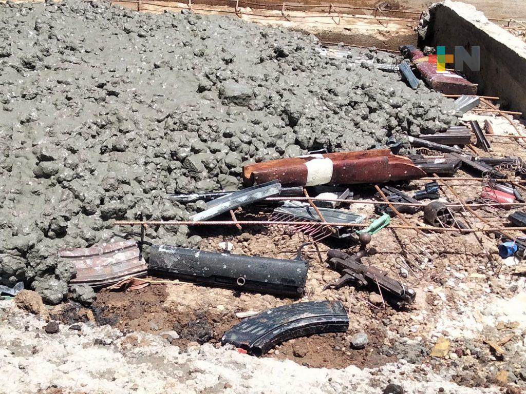 Emiliano Zapata, Ver.- 116 armas fueron destruidas por personal del Ejército Mexicano durante la ceremonia de destrucción de armamento decomisado, en la 26 Zona Militar con sede en El Lencero.