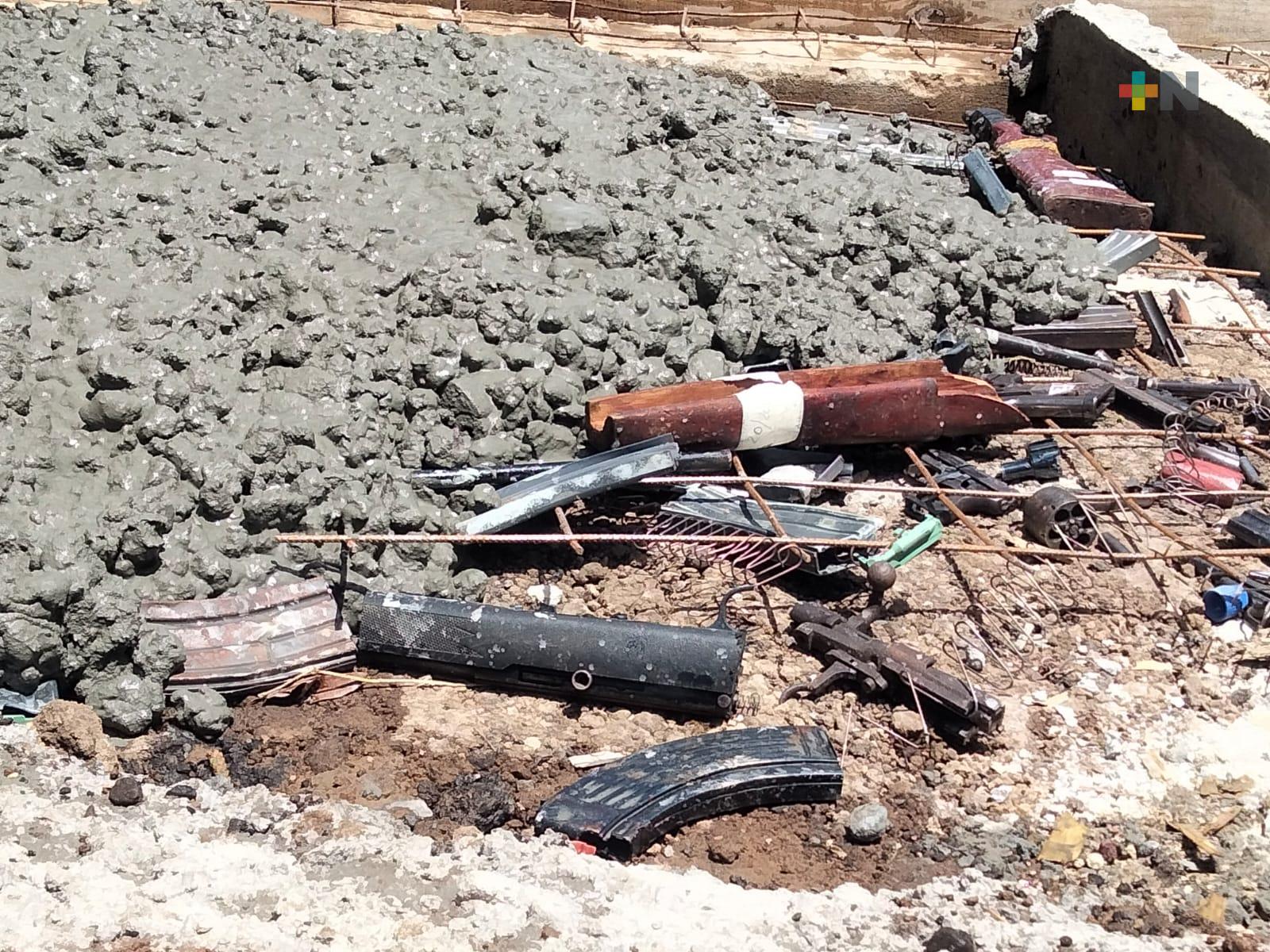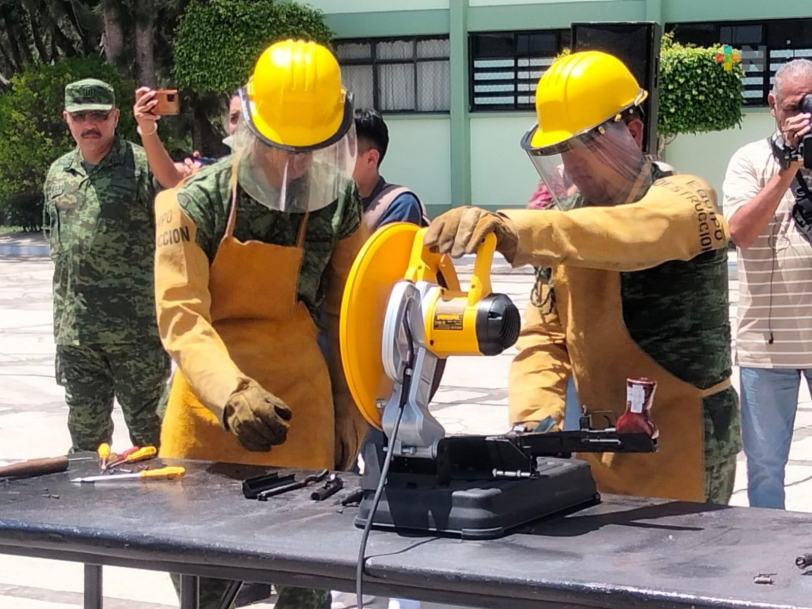 Emiliano Zapata, Ver.- 116 armas fueron destruidas por personal del Ejército Mexicano durante la ceremonia de destrucción de armamento decomisado, en la 26 Zona Militar con sede en El Lencero.