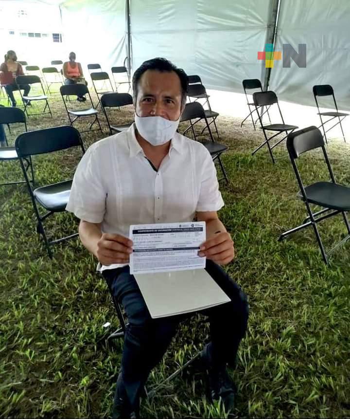 Xalapa, Ver.- Esta tarde, el gobernador Cuitláhuac García Jiménez recibió la primera dosis de la vacuna contra COVID-19 de la farmacéutica SINOVAC, tal como lo había anunciado, dentro del rango correspondiente a las personas de 30 a 39 años de edad.