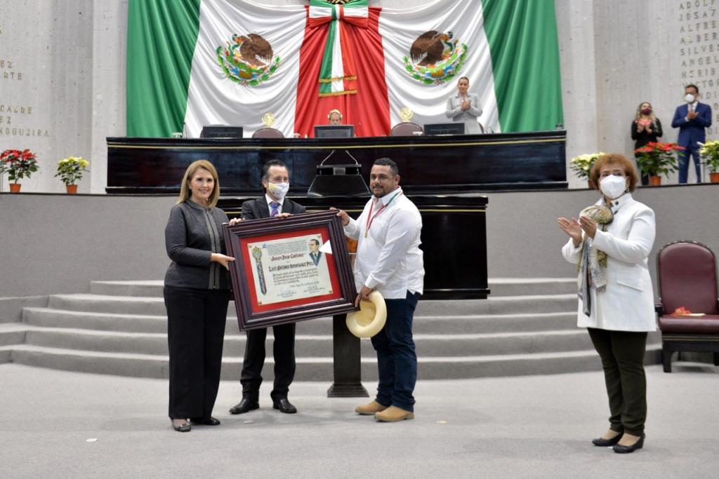 Xalapa, Ver.- En sesión solemne celebrada este viernes en la LXVI Legislatura Local, el Gobernador del Estado, Cuitláhuac García Jiménez entregó la Medalla Adolfo Ruiz Cortines, a Luis Antonio Rodríguez Pulido.