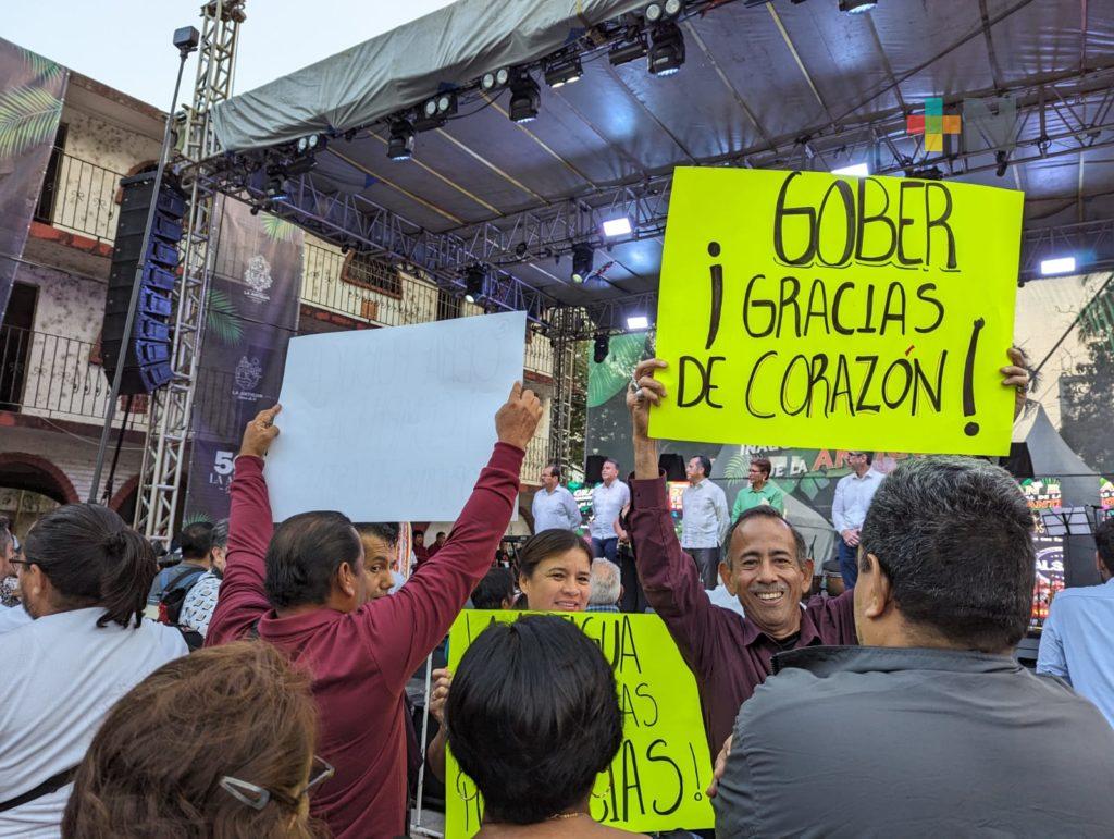 “Estamos muy agradecidos porque pasaron varios sexenios y gobernadores y a pesar de que somos un pueblo con mucha riqueza turística e historia, usted fue el primero que nos volteó a ver”, agradeció Gloria Escoto, habitante de La Antigua.