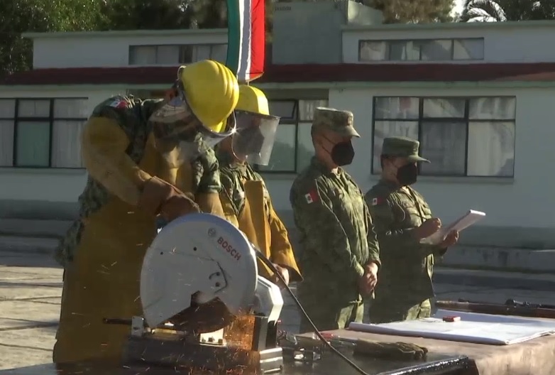 Gobernador presidió la ceremonia de destrucción de armamento en el #63 Batallón de Infantería de la Sedena