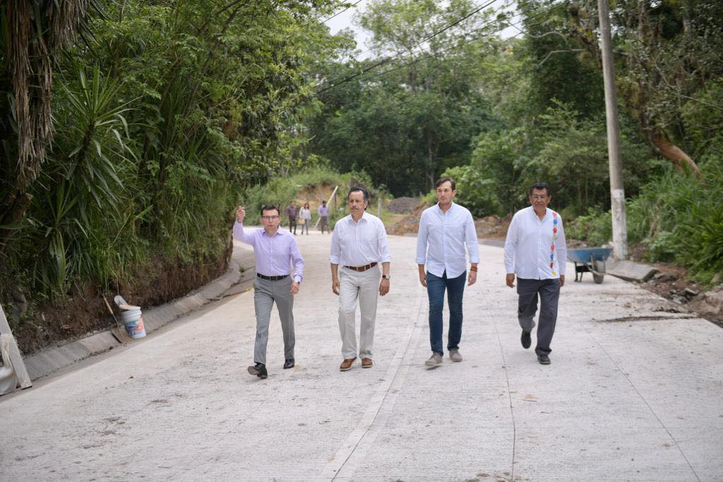 Xalapa, Ver.- El gobernador del Estado, Cuitláhuac García Jiménez recorrió y constató los avances que presenta la modernización en pavimento hidráulico en la localidad de San Marcos, del municipio de Xico.