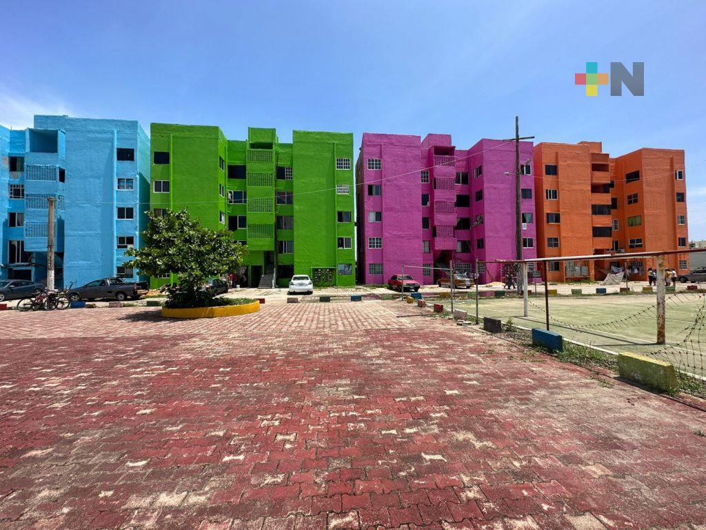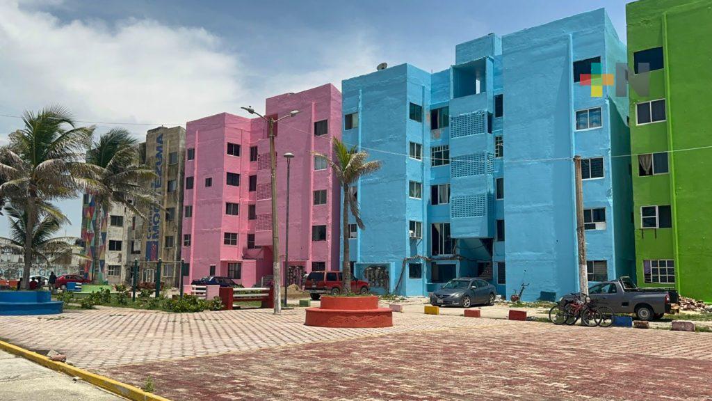 Los vecinos indicaron que el avance es del 50 por ciento en la rehabilitación de los 11 edificios de grupo M, inmuebles que se encuentran en uno de los puntos más visitados del malecón costero de Coatzacoalcos dando una imagen positiva a la ciudad.