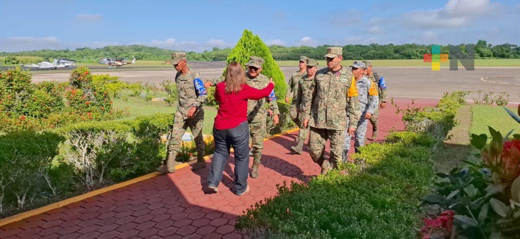 El almirante Raimundo Morales Ángeles llegó al Aeropuerto Tajín, donde se mantiene activo el puente aéreo con la entrega de víveres y medicamentos. Luego de reunirse con la gobernadora, se dirigió a Álamo Temapache y posteriormente a Texcatepec.