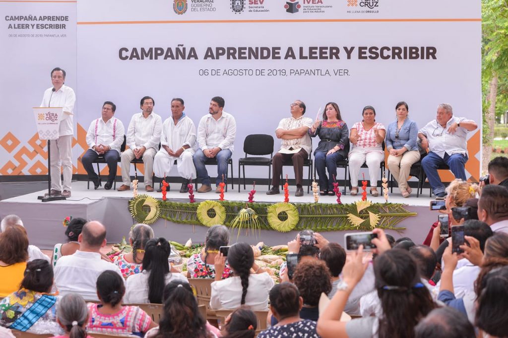 Papantla, Ver.- La política de la actual administración es atender a los sectores históricamente olvidados, por lo que el gobernador Cuitláhuac García Jiménez se ha comprometido a abatir el analfabetismo en la entidad, que actualmente afecta a 562 mil 781 personas mayores de 15 años.