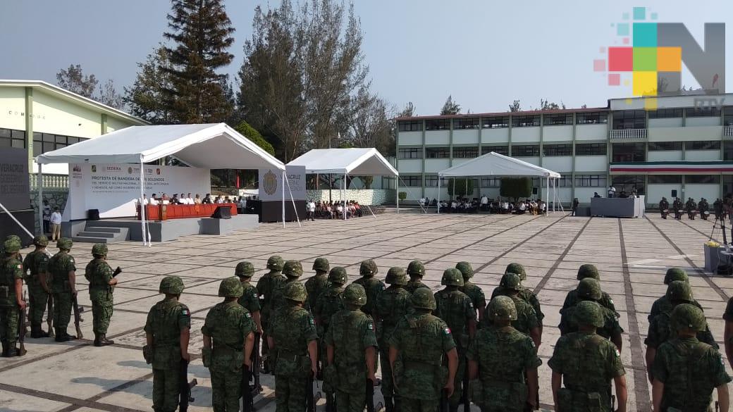 En la ceremonia realizada en el campo militar del 63 batallón de infantería de la 26 zona militar de El Lencero, 368 hombres y mujeres tomaron protesta de bandera del Servicio Militar Nacional clase 2000.