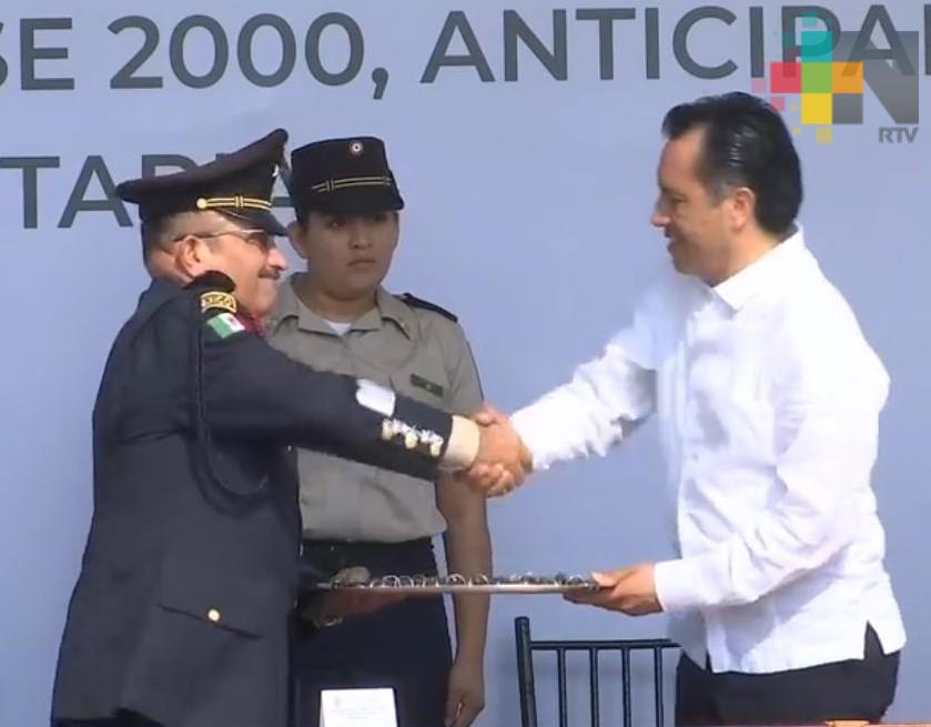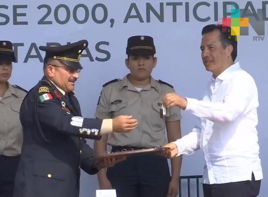 - El mandatario veracruzano entregó 25 patrullas a personal de SEDENA.