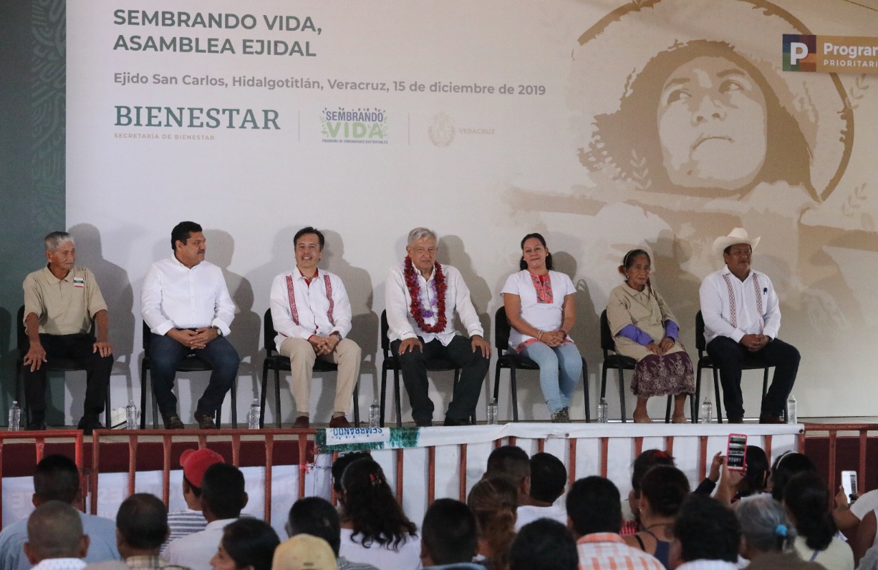 Hidalgotitlán, Ver.- En su visita al ejido San Carlos, el presidente de la República Andrés Manuel López Obrador y el gobernador Cuitláhuac García Jiménez se comprometieron a reconstruir con concreto hidráulico la carretera que va de Hidalgotitlán a Minatitlán.