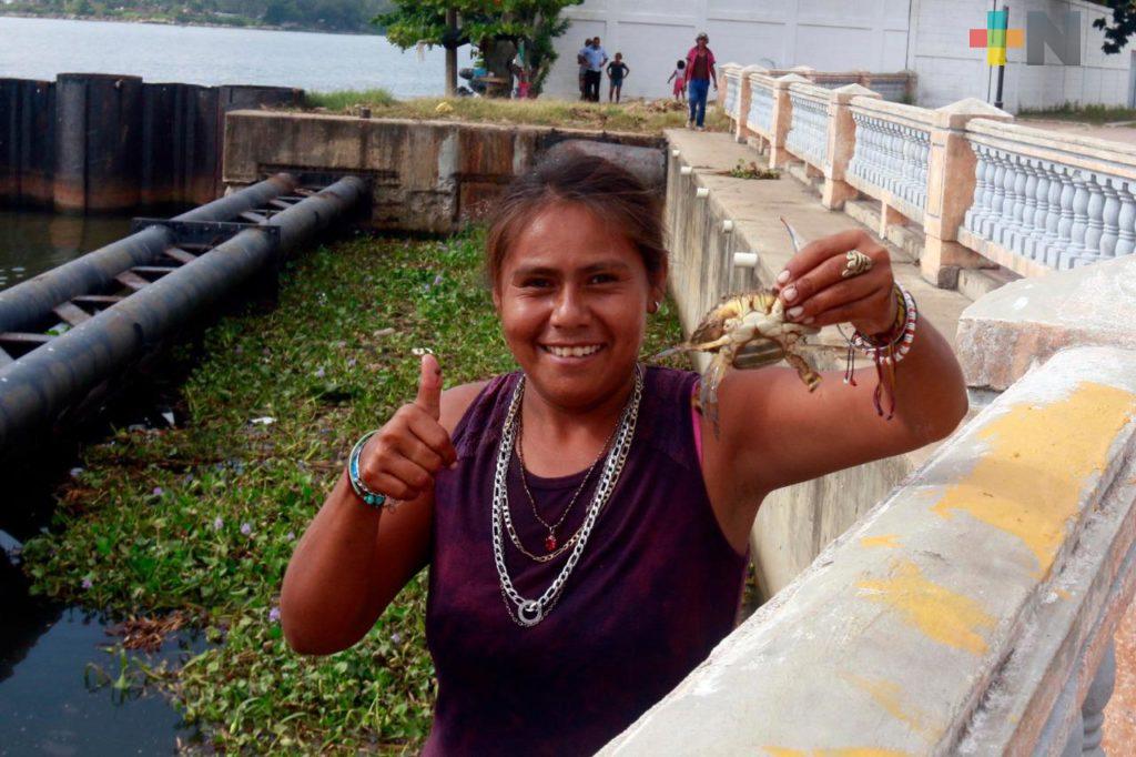 Coatzacoalcos, Ver.- Por la temporada de jaibas que se prolongará hasta el mes de agosto y la pandemia, Carlos Alberto Flores, su esposa y dos hijas, se dedican a capturar el crustáceo a las orillas del río Coatzacoalcos a la altura del túnel sumergido.