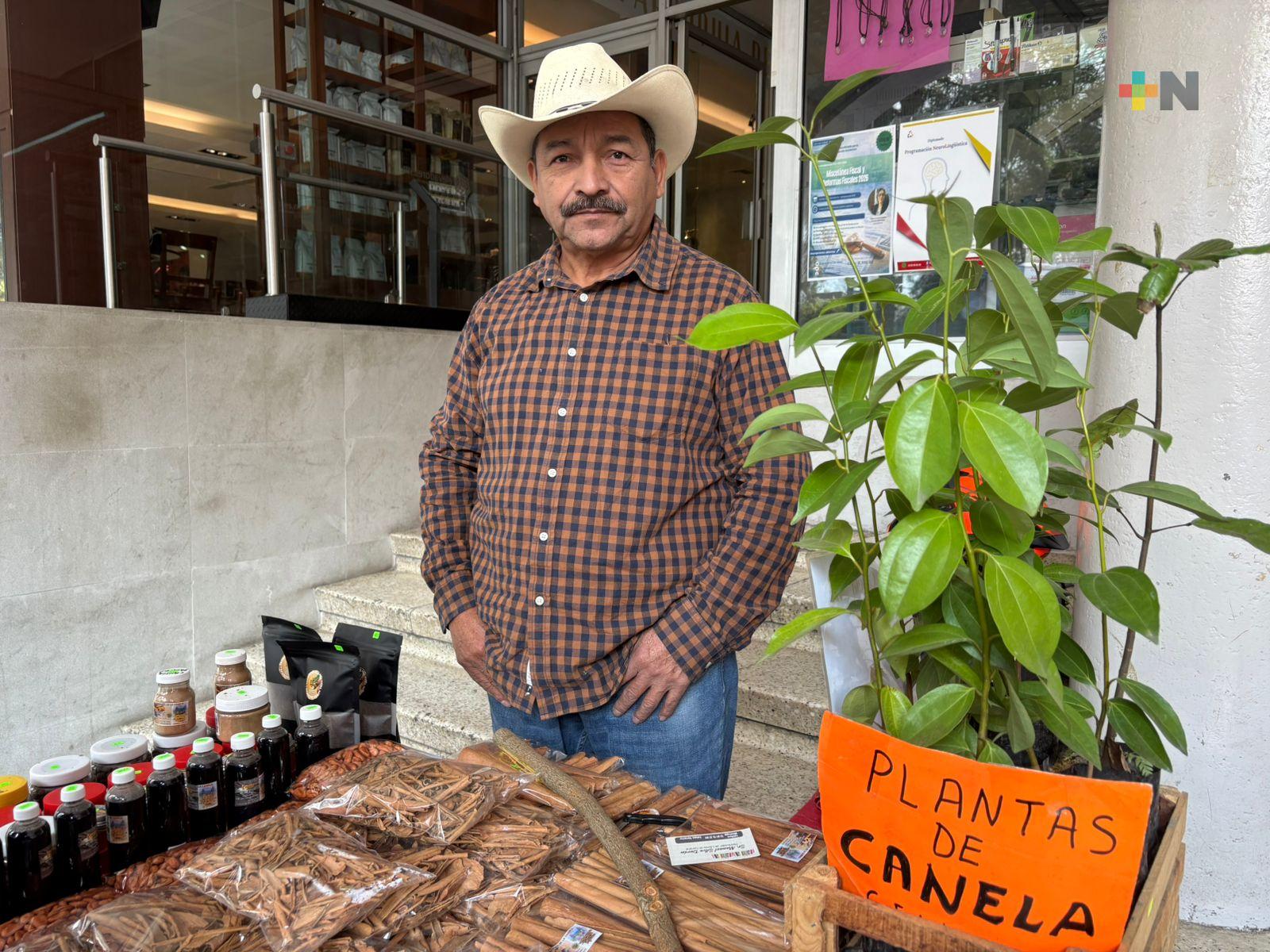 Xalapa, Ver.- Pequeños productores veracruzanos han sido apoyados en la actual administración estatal invitándolos a exponer sus productos. Tal es el caso de don Gilberto Ramírez Pérez, proveniente del municipio de Zozocolco que ofrece canela Ceylán.