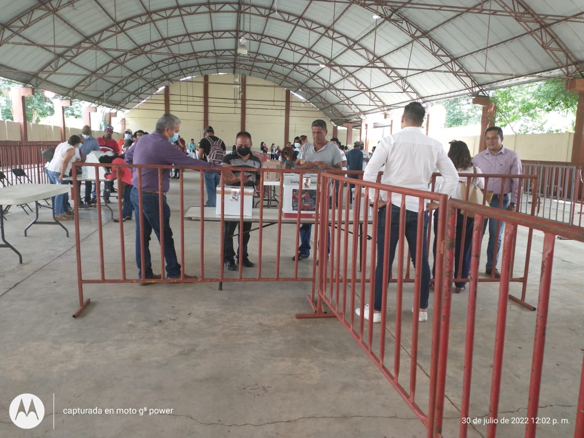 En Hueyapan de Ocampo y Tantoyuca registran largas filas los militantes para emitir su voto, este sábado.