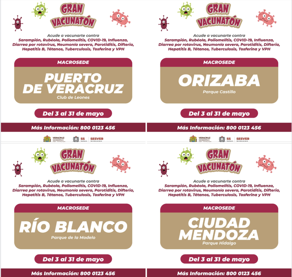 A partir de mañana y hasta el 31 de mayo estaremos administrando dosis de vacunas correspondientes al Programa de Vacunación Universal», así lo publicó SS/Sesver en su cuenta de la red social, Facebook.