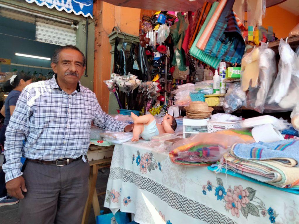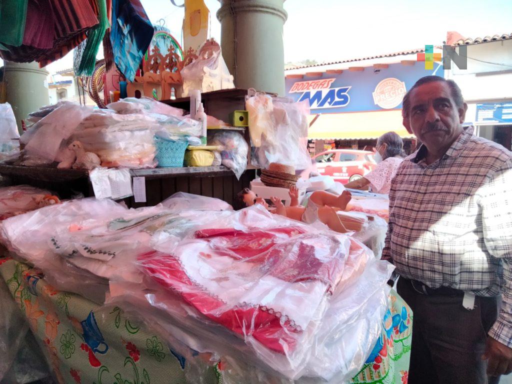En Coatepec, locatarios del mercado Miguel Rebolledo ofrecen distintos vestidos y accesorios de distintos tamaños para vestir al niño dios en estas fechas.