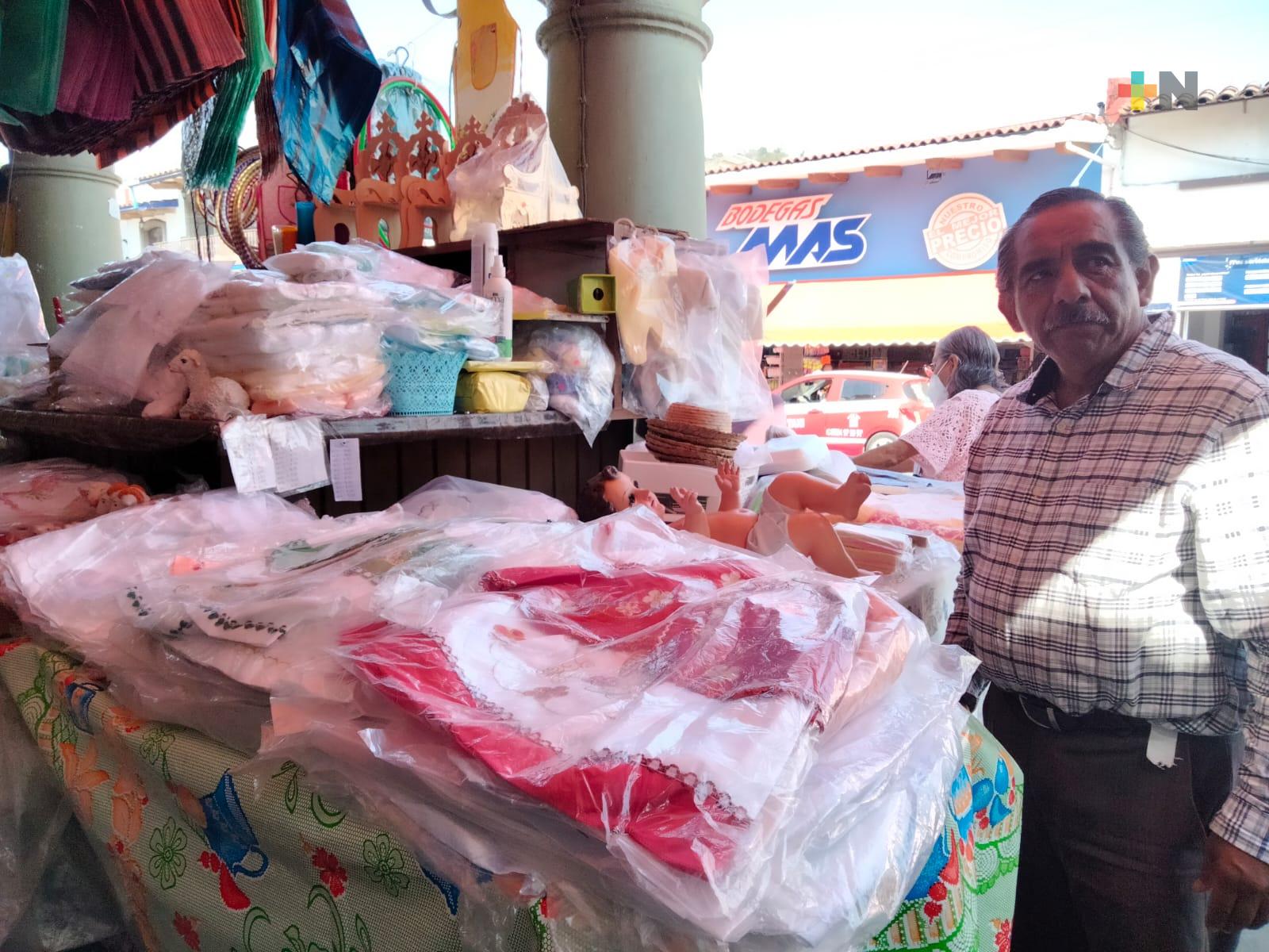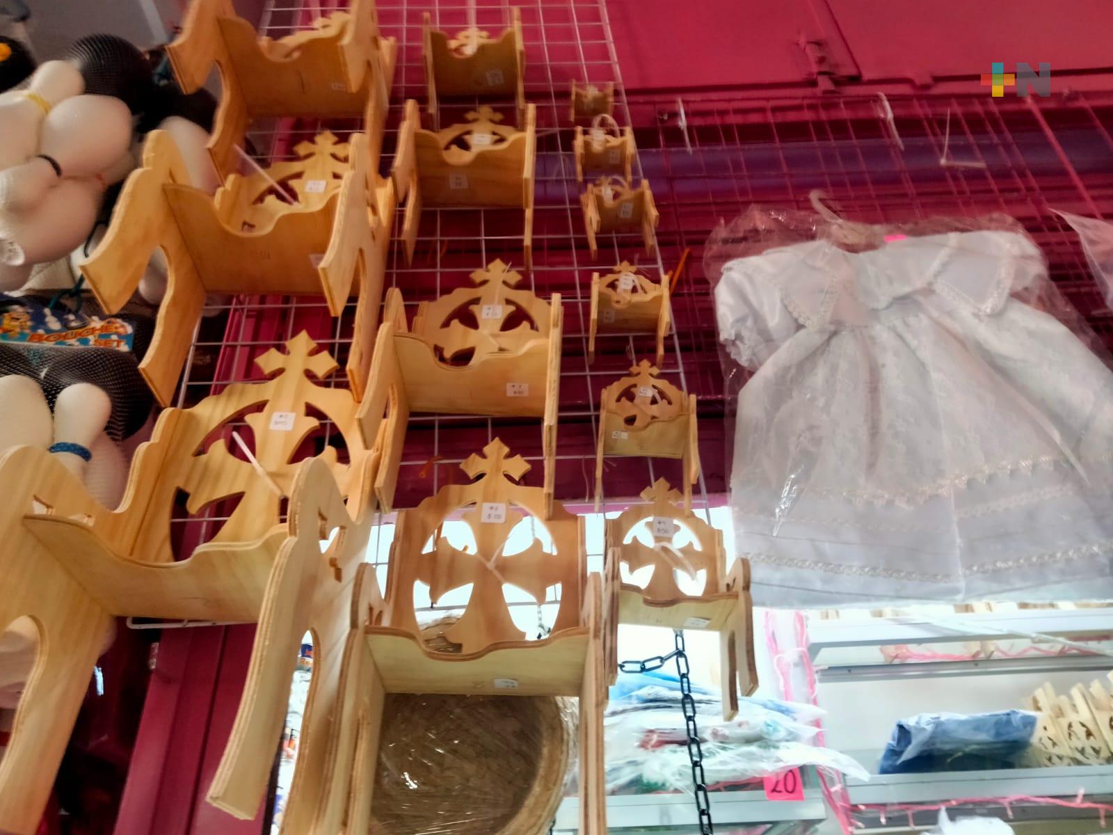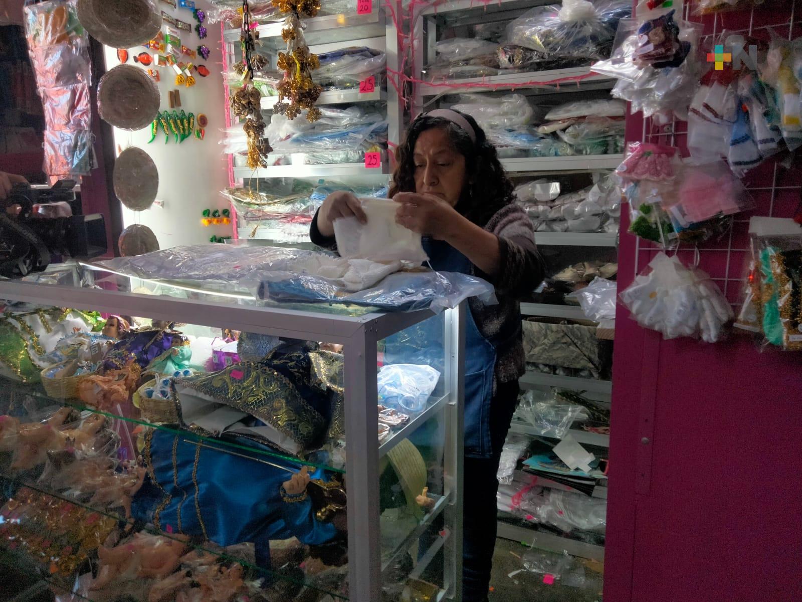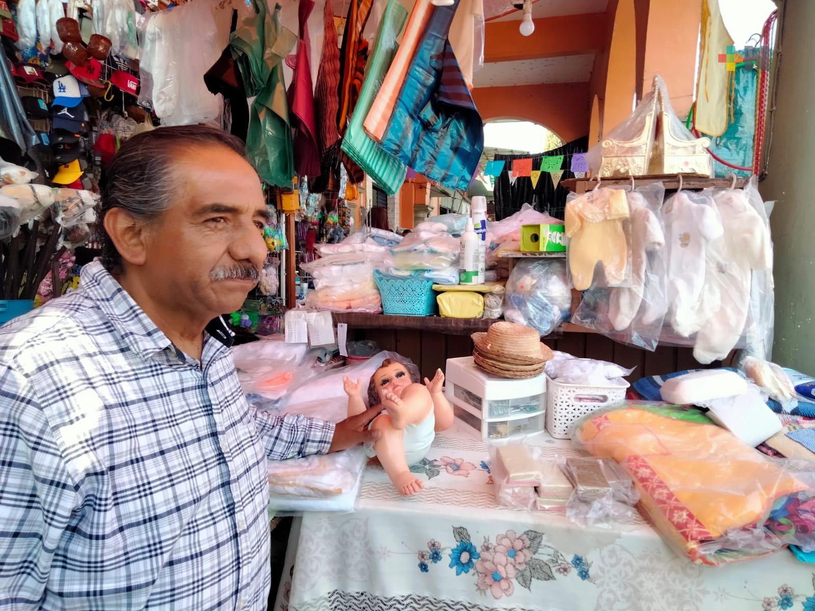 En Coatepec, locatarios del mercado Miguel Rebolledo ofrecen distintos vestidos y accesorios de distintos tamaños para vestir al niño dios en estas fechas.