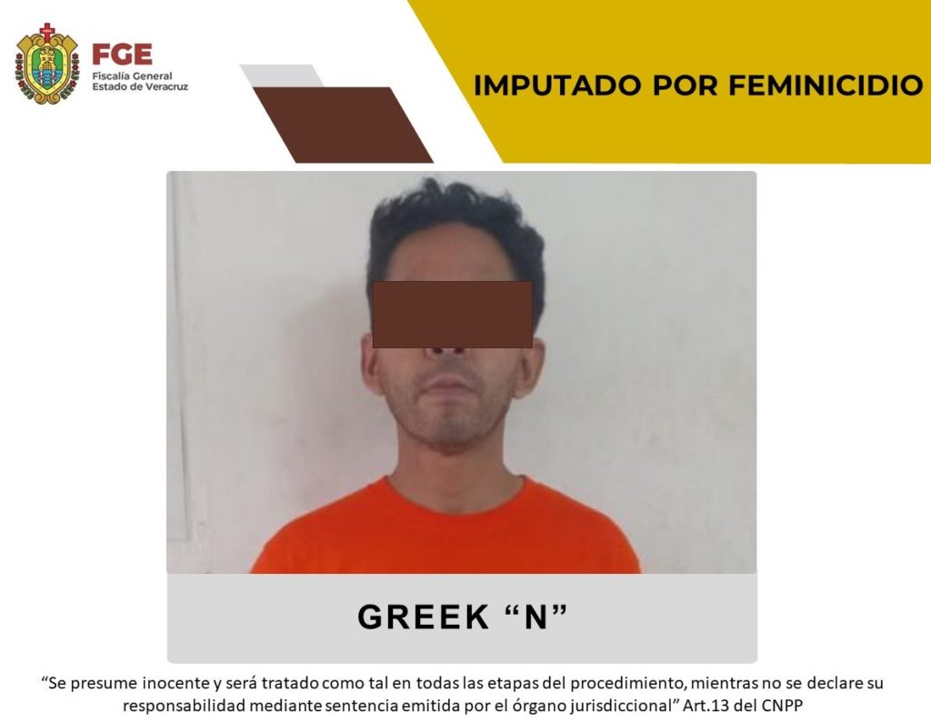 Xalapa, Ver.- La Fiscalía Especializada en Investigación de Delitos de Violencia contra la Familia, Mujeres, Niñas y Niños y de Trata de Personas obtuvo en Xalapa imputación en contra de Greek “N” por el presunto delito de feminicidio en agravio de la víctima quien en vida se identificaba con las iniciales V.M.V.