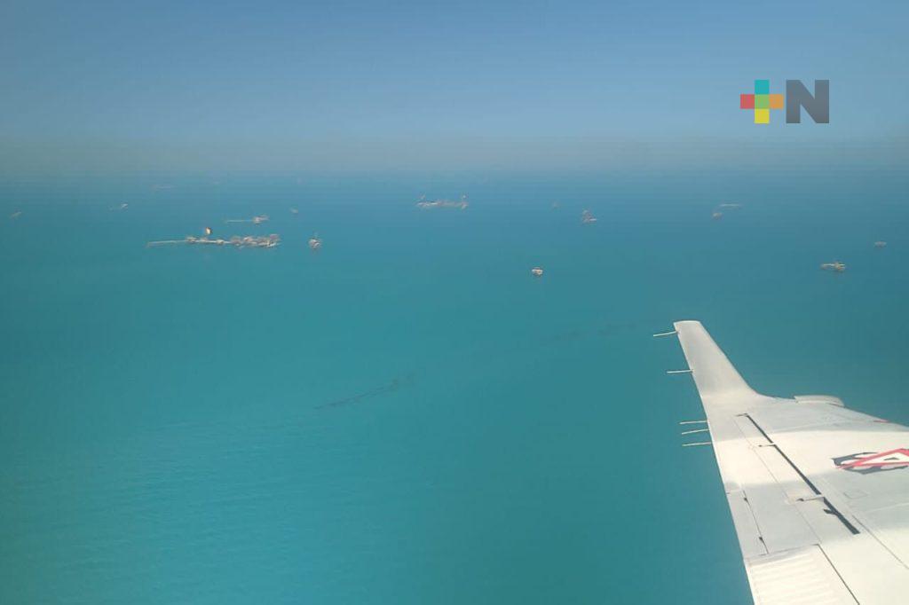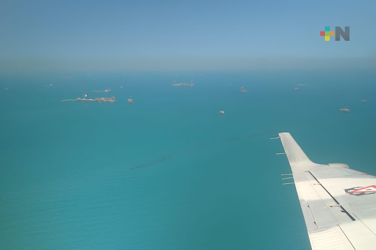 Con lo anterior, Marina ha realizado recorridos marítimos, terrestres y aéreos de vigilancia ambiental, para el monitoreo y detección de manchas o recales de hidrocarburo; ha atendido más de 223 kilómetros de playas, incluyendo la desembocadura del río Papaloapan y retirado más de 430 toneladas de contaminantes de la superficie marítima y costas.