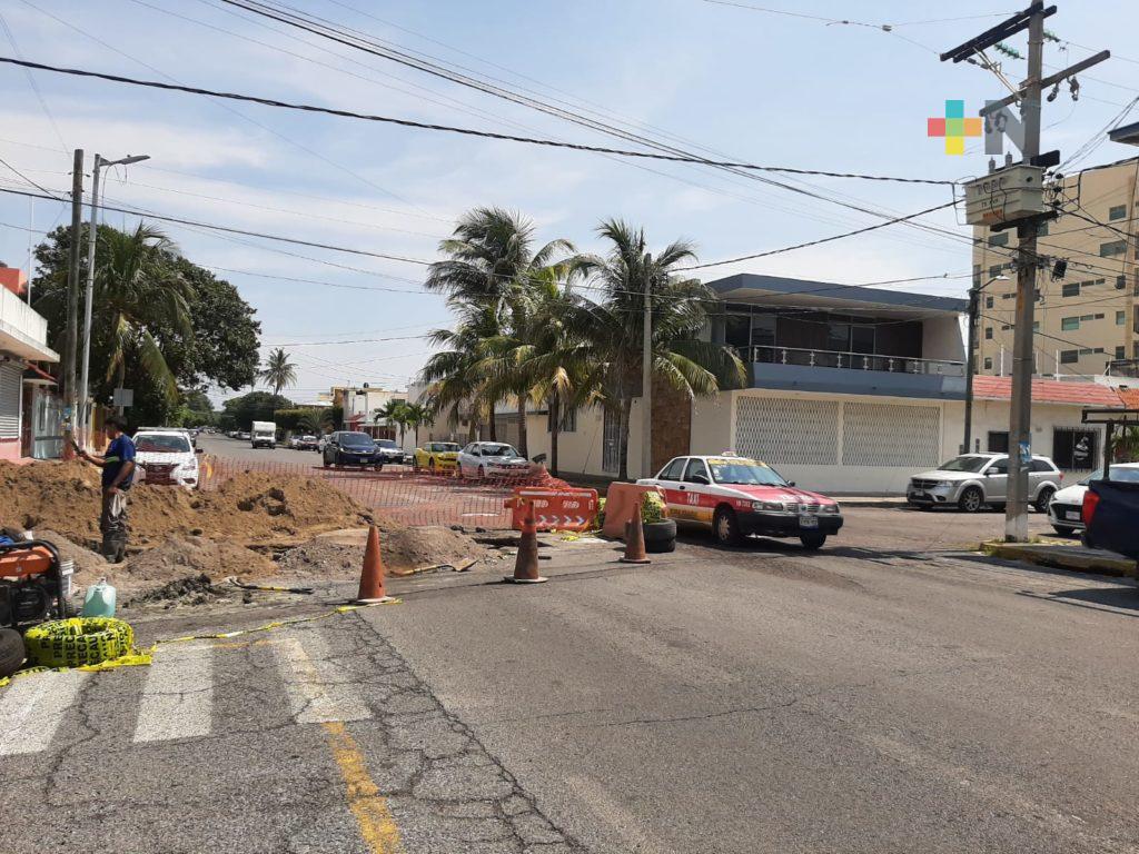 Veracruz, Ver.- En el cruce de las calles de Negrete y Horacio Díaz Correa de la ciudad de Veracruz se registró un hundimiento ocasionado por un problema en el ducto de drenaje de la red central que atraviesa estas calles.