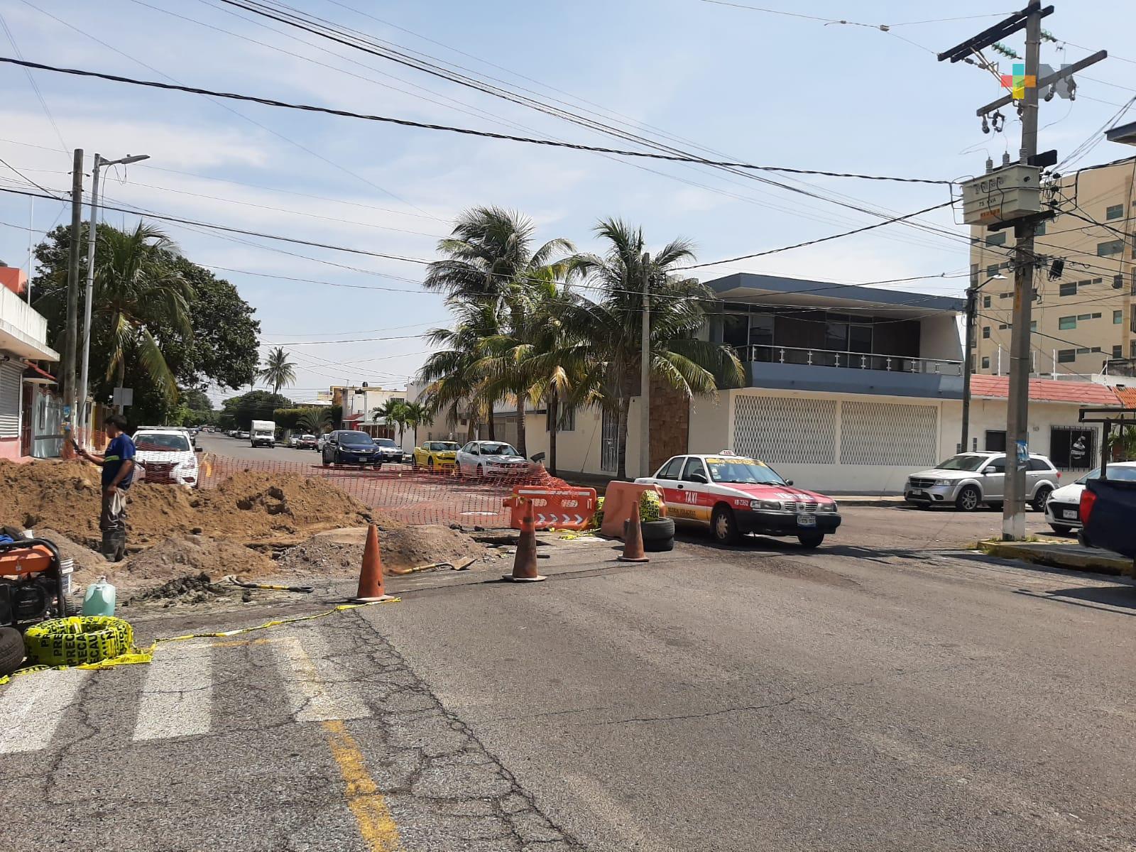 Veracruz, Ver.- En el cruce de las calles de Negrete y Horacio Díaz Correa de la ciudad de Veracruz se registró un hundimiento ocasionado por un problema en el ducto de drenaje de la red central que atraviesa estas calles.