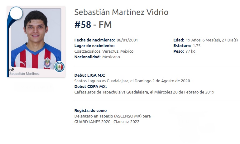 Veracruz, Ver.- Este domingo en la cancha del Estadio Corona debutó el futbolista profesional veracruzano Sebastián Martínez Vidrio, portando el #58 en su jersey del Guadalajara en el máximo circuito, en el partido correspondiente a la Jornada 2 del Torneo Guard1anes 2020, ante Santos Laguna.