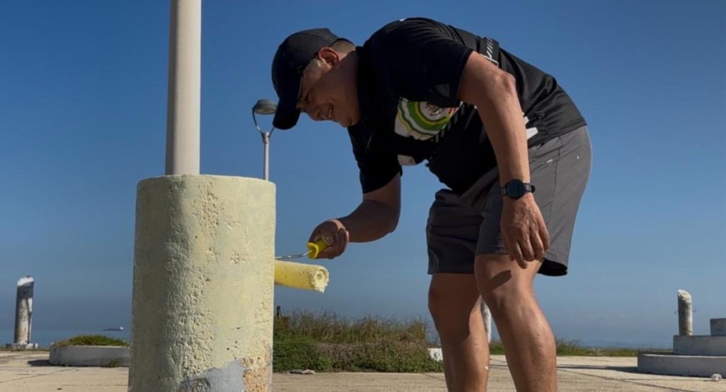 Coatzacoalcos, Ver.— Como parte de su presencia en el municipio, la Guardia Nacional realizó este fin de semana labores de mejoramiento en una parte de la tercera etapa del Malecón Costero, específicamente en la Plaza del Espíritu Santo, conocida por los porteños como la Plaza de la Paloma o la Plaza de los Centroamericanos.