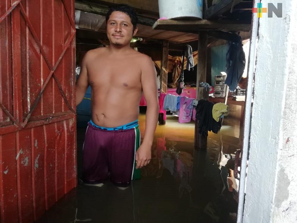Habitantes de Las Choapas en esperan de que disminuya nivel de agua