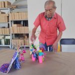 Milburgo Treviño comparte su talento en cartonería en un taller que imparte en el Centro Cultural Atarazanas del Instituto Veracruzano de Cultura (IVEC).