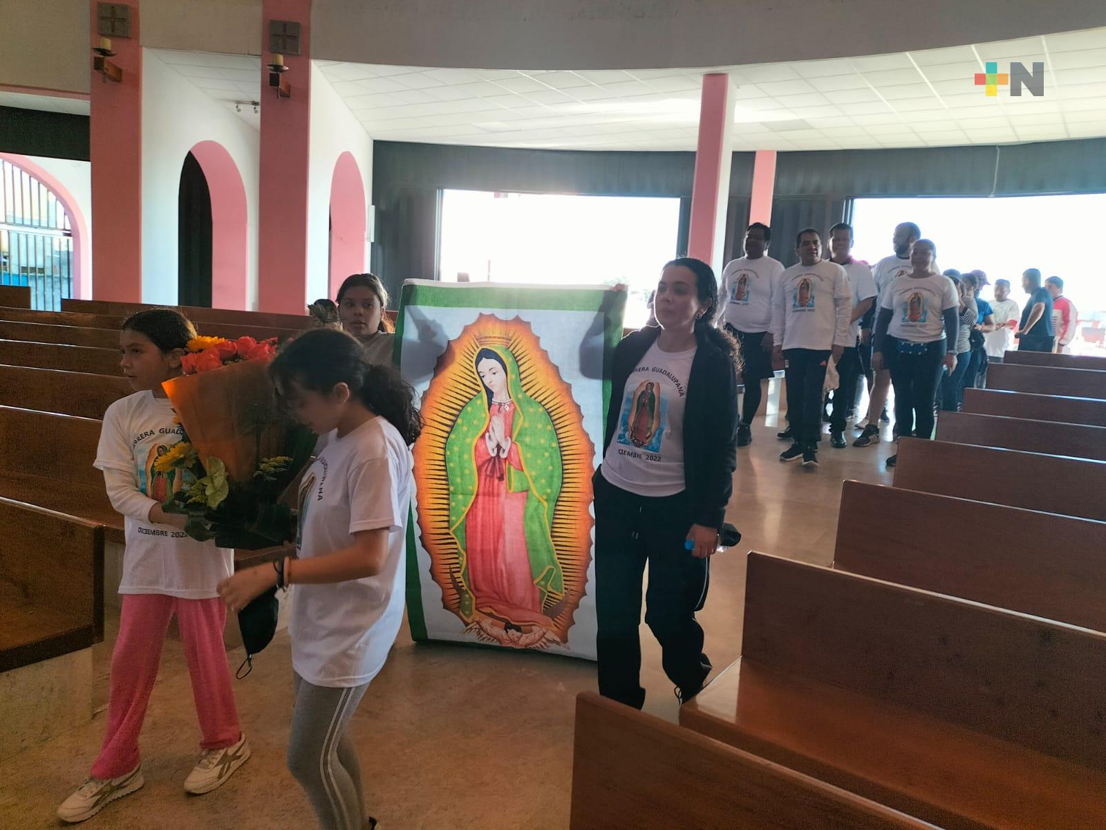 Xalapa, Ver.- En vehículos, caminando y hasta corriendo, grandes y cortas distancias llegan los peregrinos y devotos a visitar a la Virgen de Guadalupe en la Basílica Menor ubicada en el barrio de El Dique, en Xalapa.
