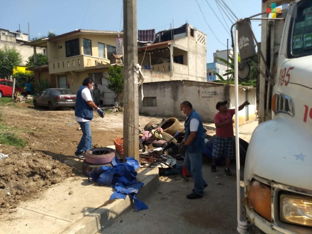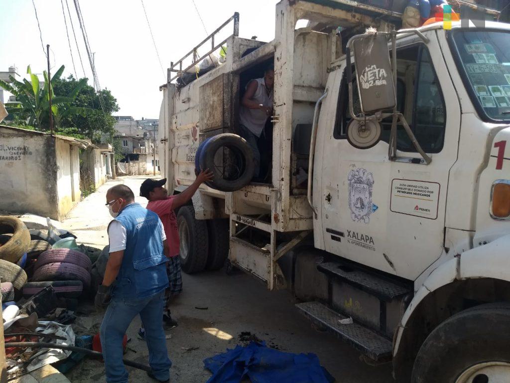 Xalapa, Ver.- Hasta 5 toneladas de cacharros, en su mayoría llantas, se recogen en las colonias de Xalapa cada fin de semana durante las jornadas de descacharrización que realiza el Ayuntamiento de Xalapa como parte de las acciones de prevención contra el dengue.