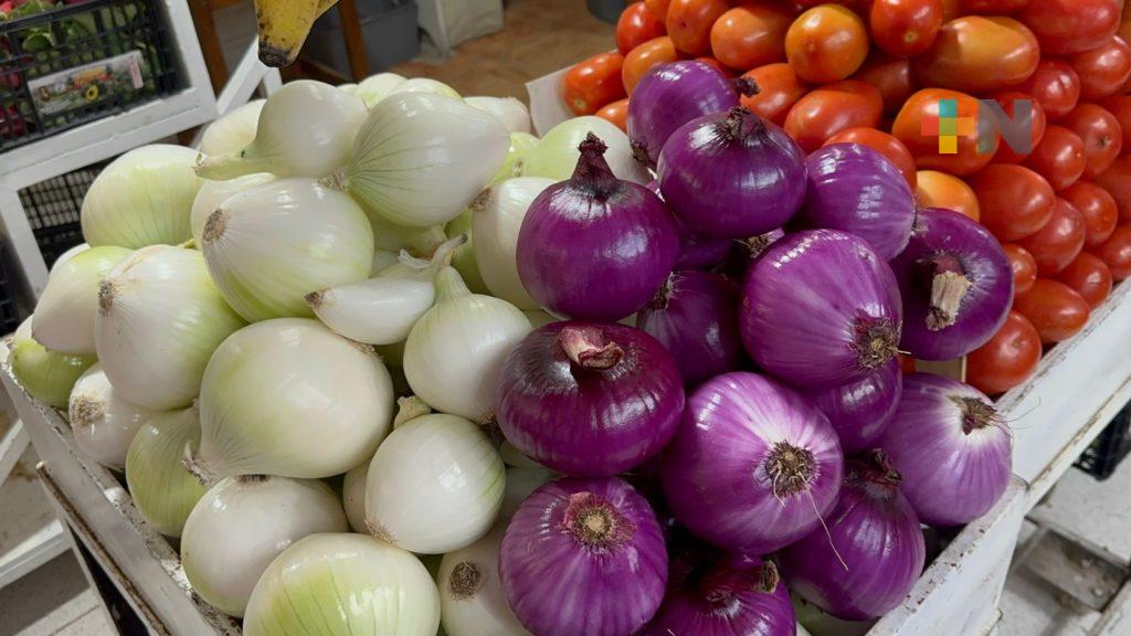 En el mercado Coatzacoalcos, de acuerdo con Elías Canseco, comerciante de verduras, el kilo de tomate va de 55 a 60 pesos, mientras que el kilo de cebolla ronda entre los 40 y 45 pesos.