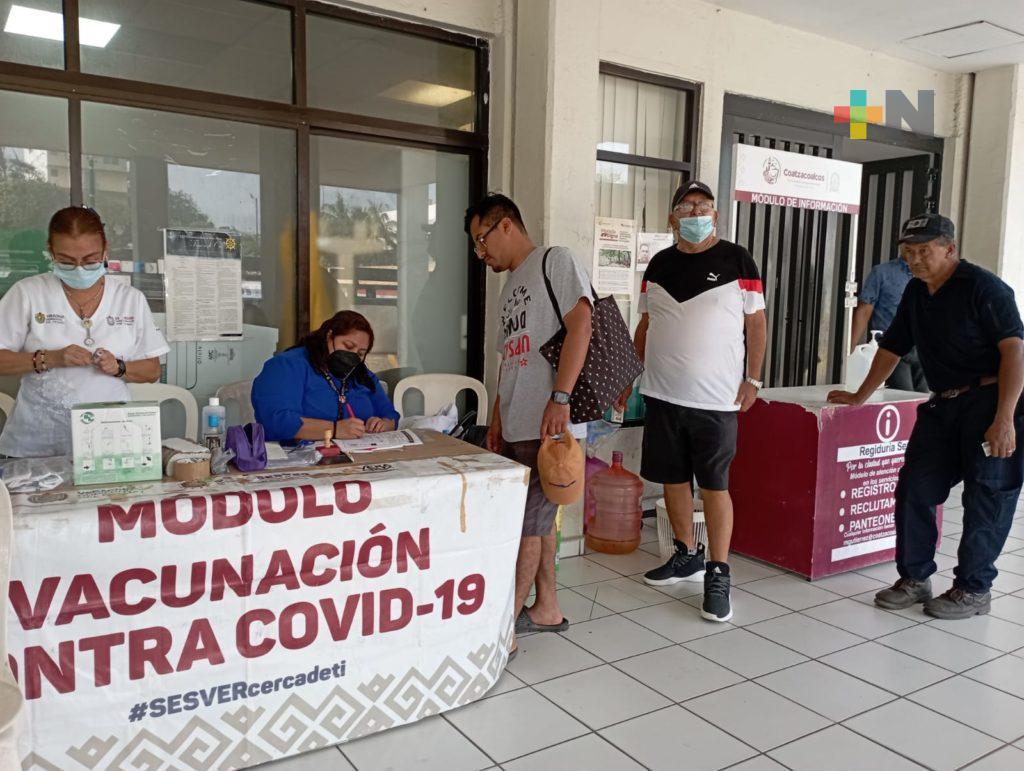 Coatzacoalcos, Ver.- Desde este lunes y hasta el próximo seis de enero personal de la Secretaría de Salud del Estado, estará aplicando primeras dosis y vacuna de refuerzo a la población mayor de 18 años en los bajos del palacio municipal.