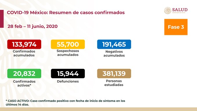 México.- Actualmente hay 133 mil 974 casos confirmados a Covid-19 dio a conocer la Secretaría de Salud Federal.