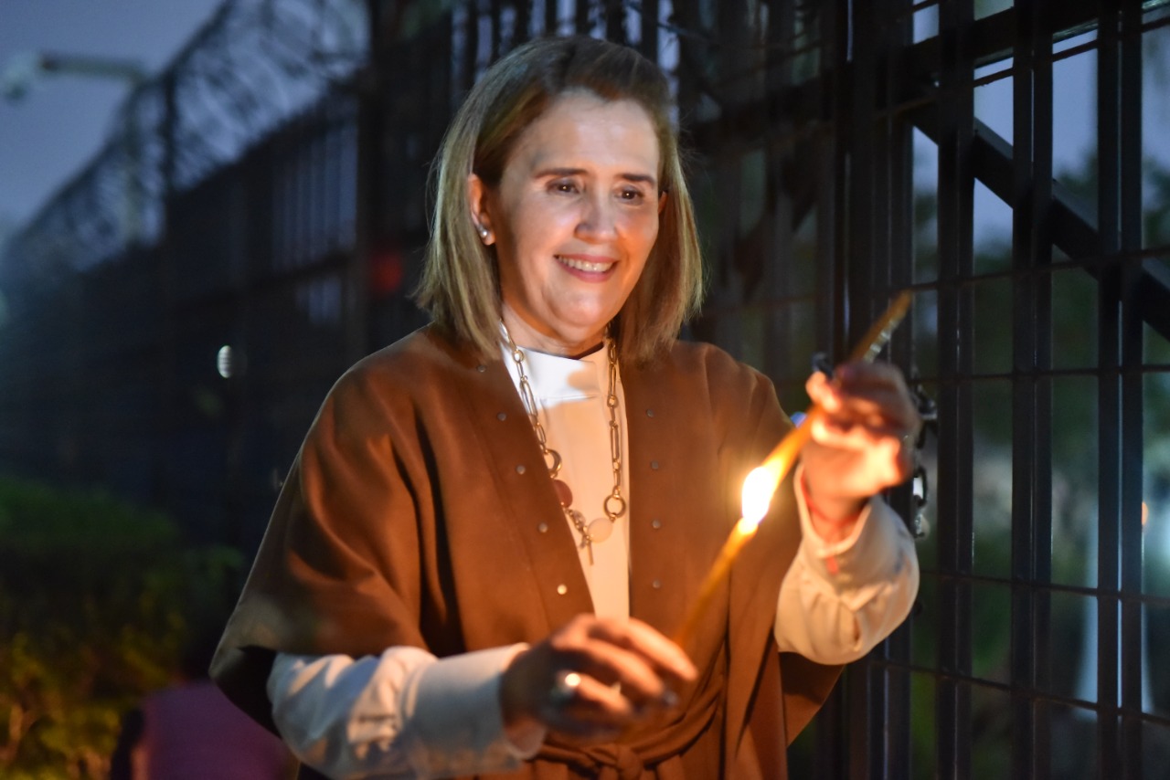 Este martes a las 19:00 horas, la Diputada acudió al encendido de las velas que fueron colocadas en forma de camino, alrededor de las instalaciones de este Palacio Legislativo, y que representa la guía para el regreso a casa.