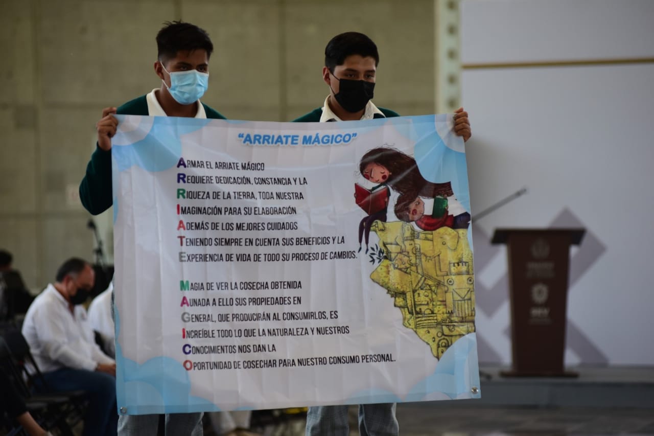 Xalapa, Ver.- Estudiantes de telesecundarias de Ayahualulco, Jalacingo y Perote, participaron en la Exposición de Estrategias de Aprendizaje desde un Enfoque de la Nueva Escuela Mexicana, para una demostración del arriate mágico (huertos escolares), el bosque de la lectura y los talleres de la Brigada Mujeres Insurgentes , que fomentan la educación y la lectura de forma lúdica.