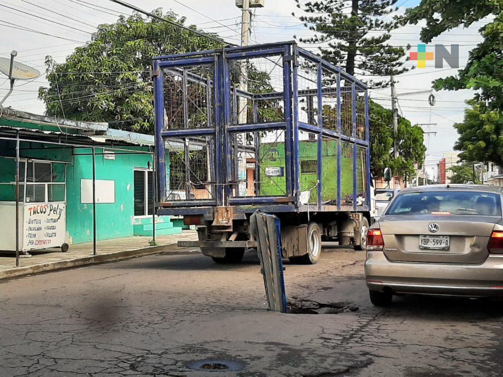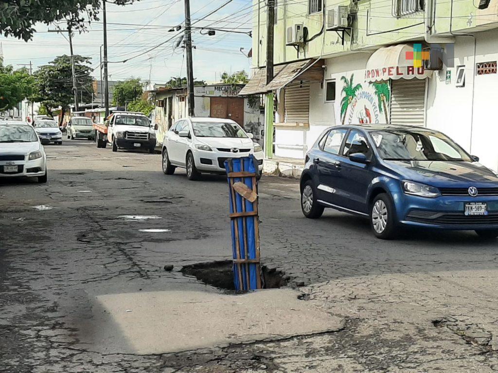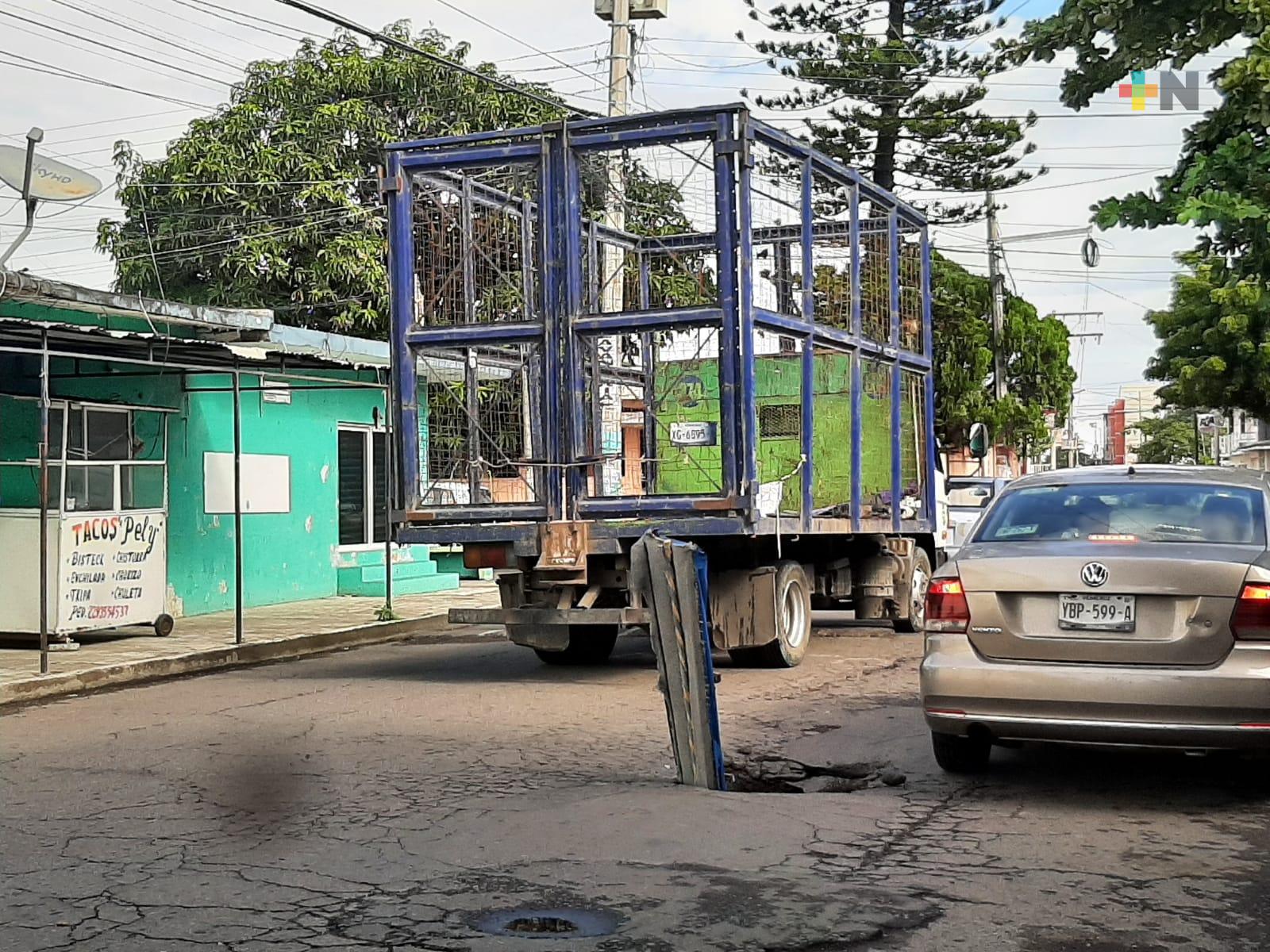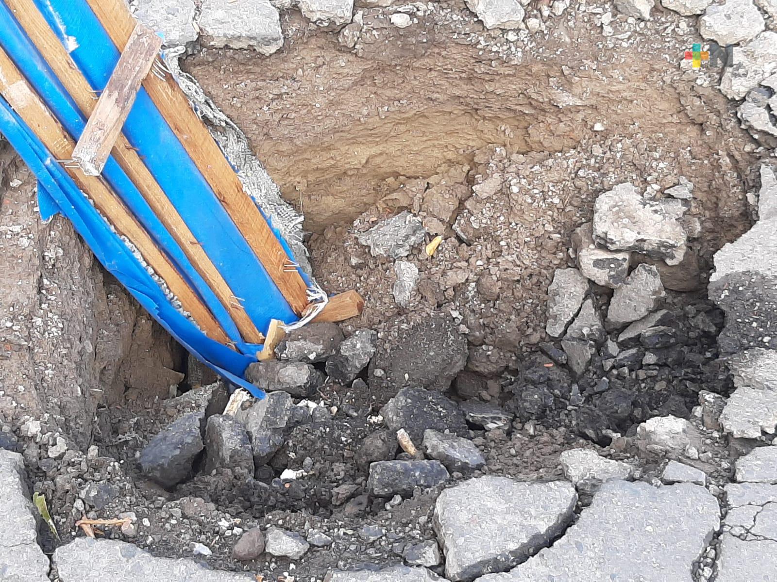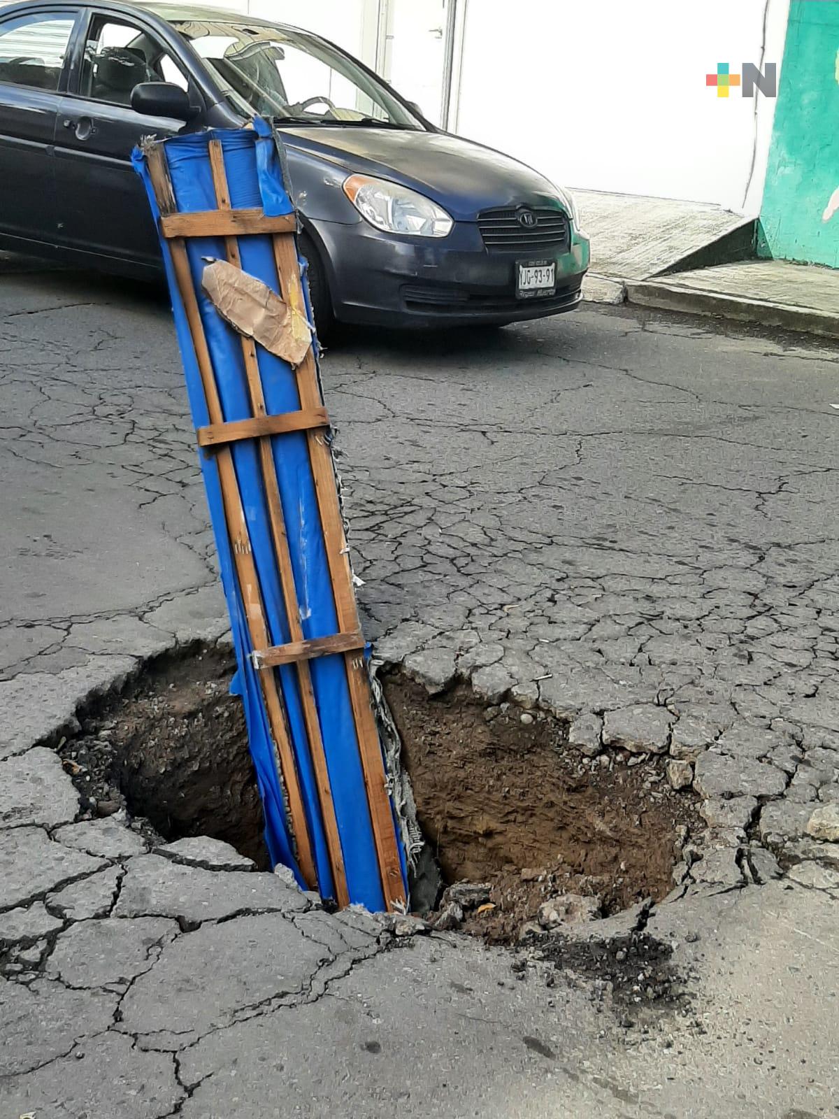 Veracruz, Ver.- Habitantes de la colonia Remes en Boca del Río exigen a la autoridad municipal atender el hundimiento que lleva cerca de un mes sobre la avenida 20 de noviembre entre Las Flores y Margaritas.