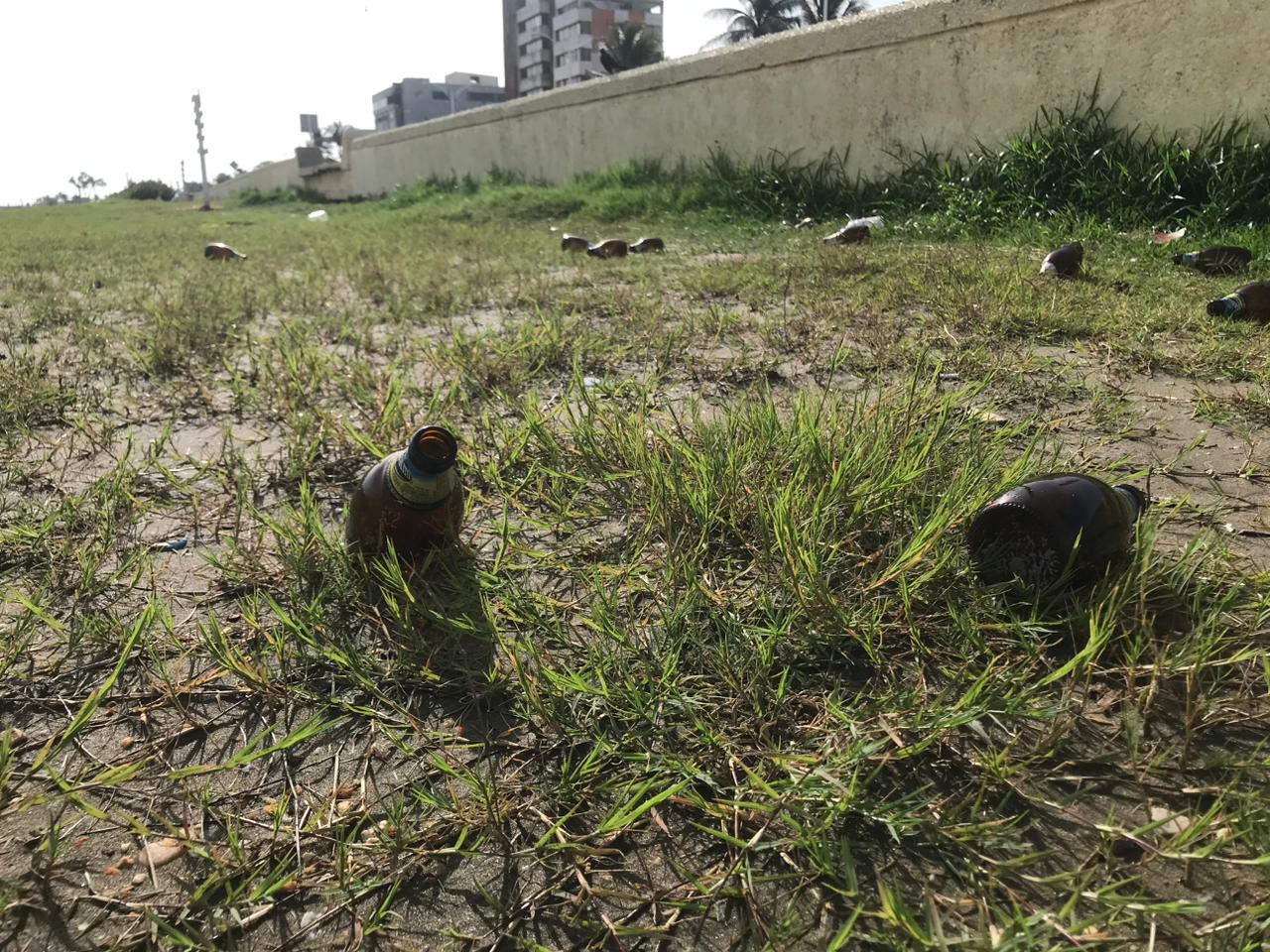 En el sitio donde se colocó uno de los anuncios aparecieron residuos como envases de cerveza y refrescos, entre otros.