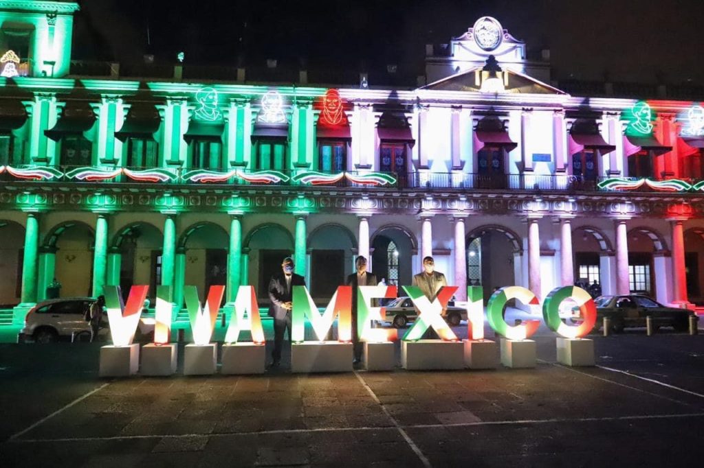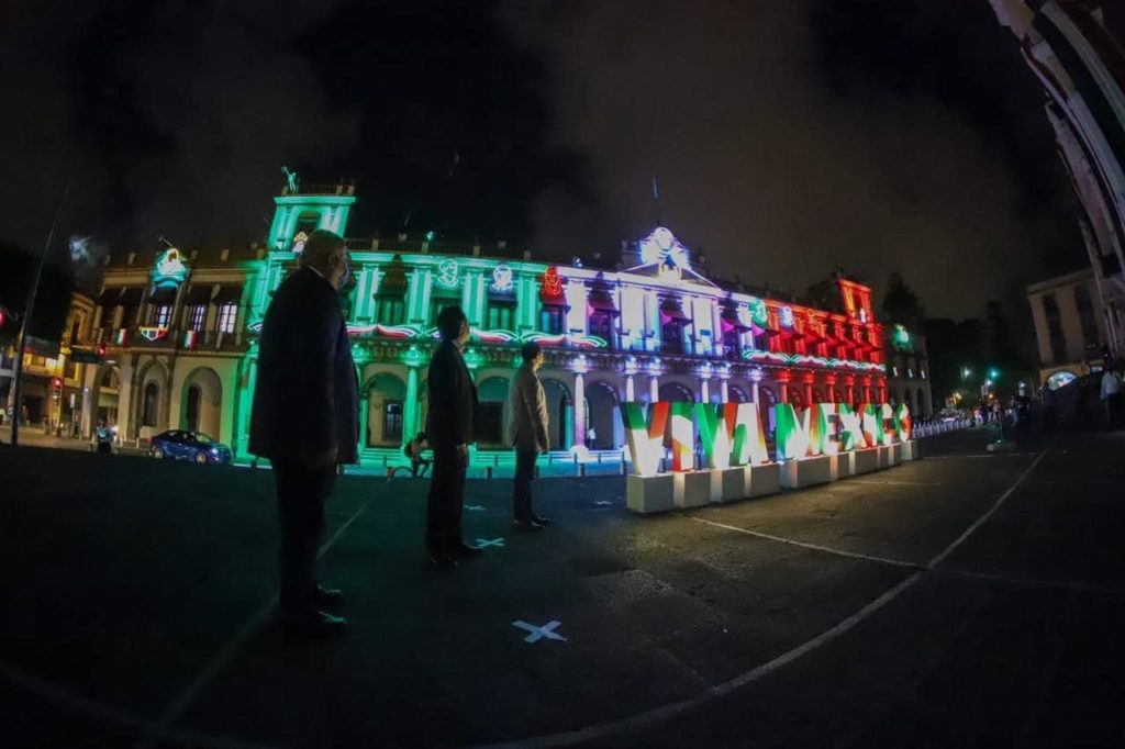 Xalapa, Ver.- Con el encendido de luces del Palacio de Gobierno, la noche de este lunes el Gobierno del Estado inició formalmnete la conmemoración del 210 Aniversario de la Independencia de México.