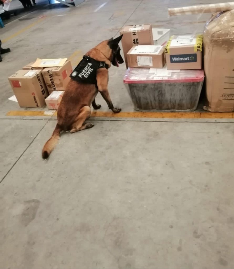 Implementa Compañia K9 de Fuerza Civil operativo en paqueterías del puerto