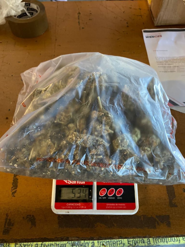 Agentes caninos detectaron en un establecimiento del giro referido tres paquetes, los cuales contenían en su interior 248, 534 y 138 gramos de hierba verde con características de la marihuana, los cuales iban a ser enviados a diferentes destinos.
