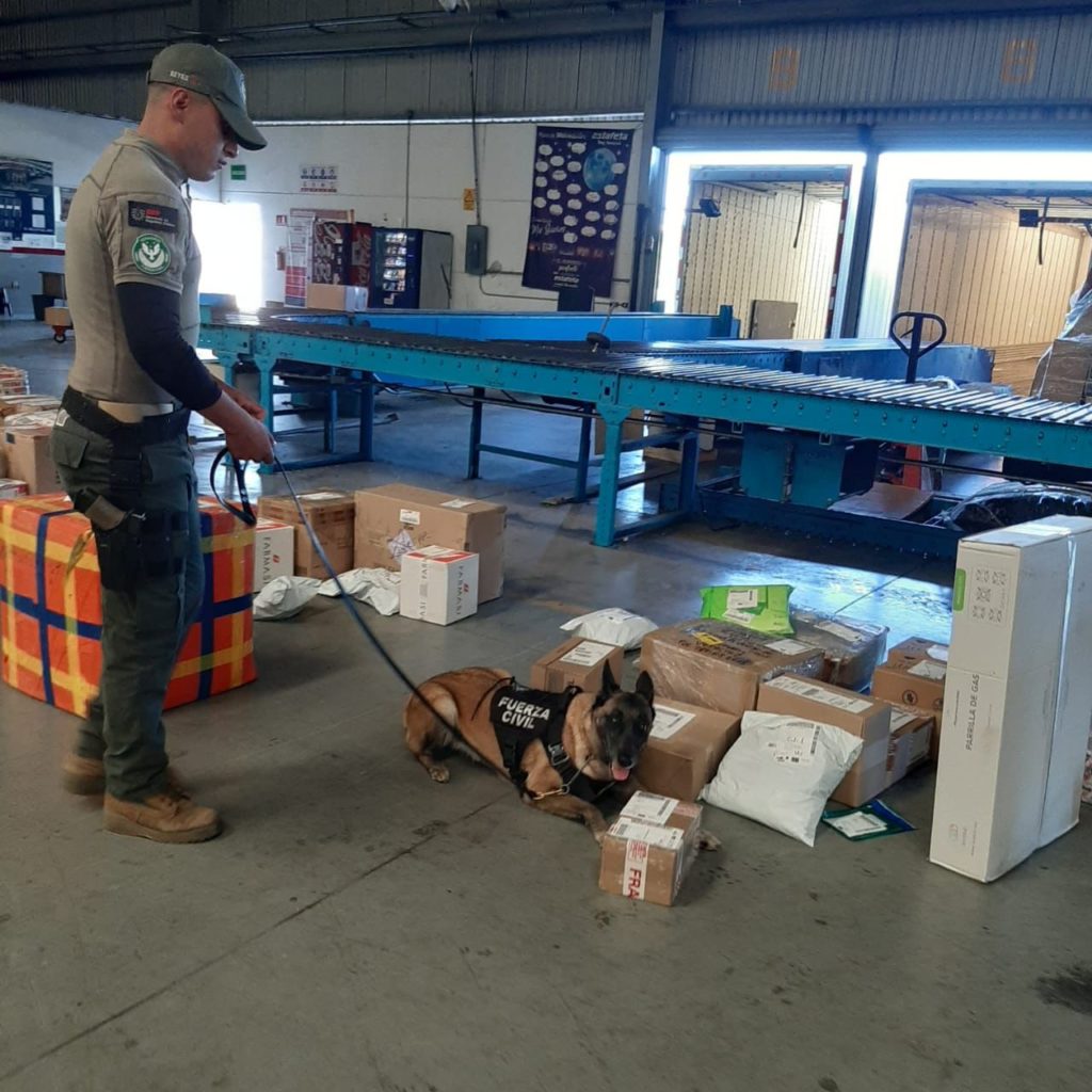 Veracruz, Ver.- En las acciones encaminadas a la Construcción de la Paz, efectivos de la Secretaría de Seguridad Pública (SSP), a través de la Compañía K-9 de Fuerza Civil, implementaron un Operativo en establecimientos dedicados al envío de paquetería, con el objetivo de detectar sustancias ilícitas o algún tipo de arma.